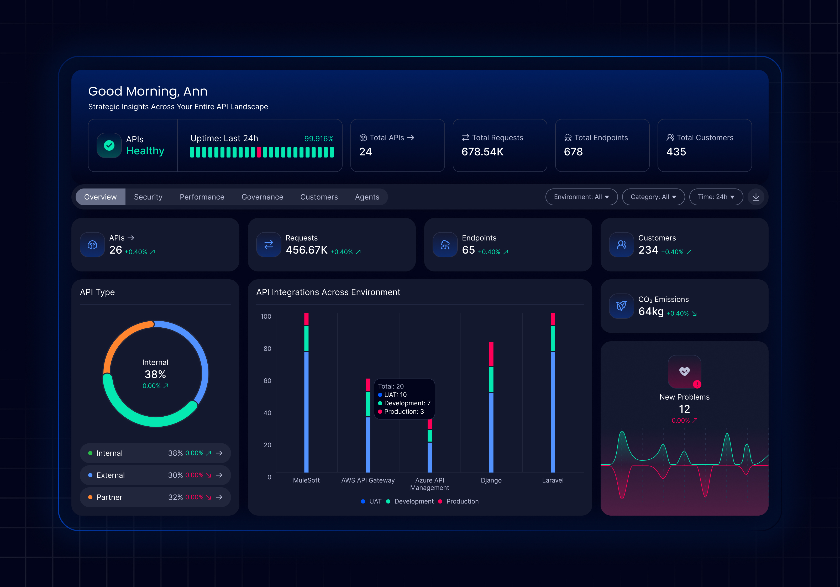 WorkspaceWidgetServiceThe new Home dashboards transform your API landscape overview by providing specific views and lenses on your data, ensuring the most relevant decision-making insights.