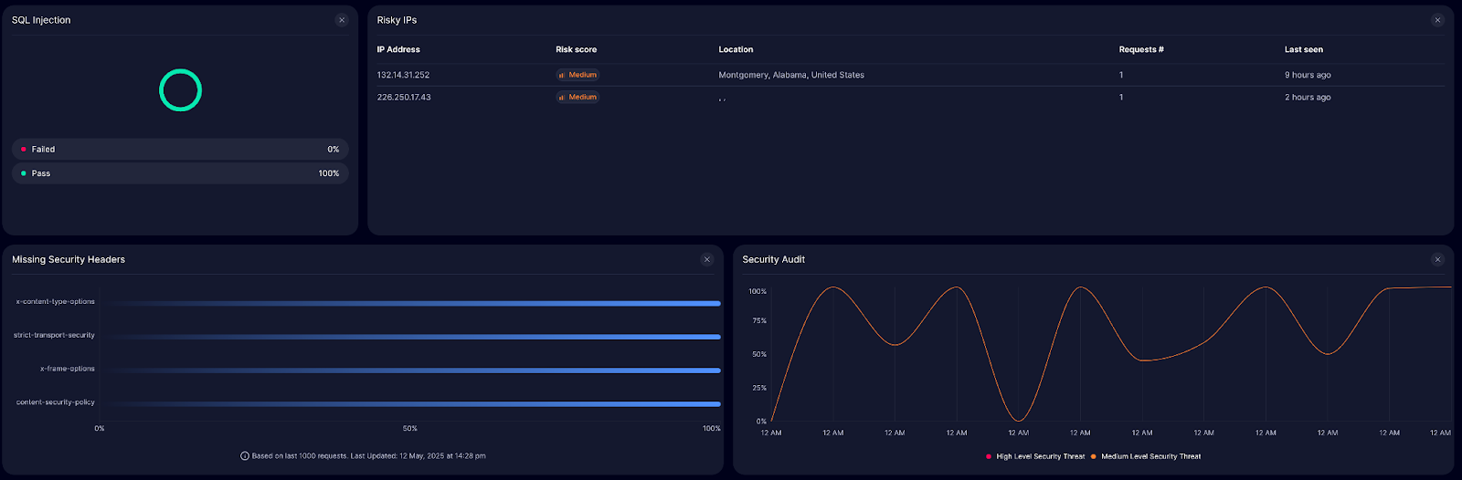 New security widgets include SQL injection checks, IP risk assessments, and estimates of potential DDoS threats. They also provide quick header validation and comprehensive security audits.