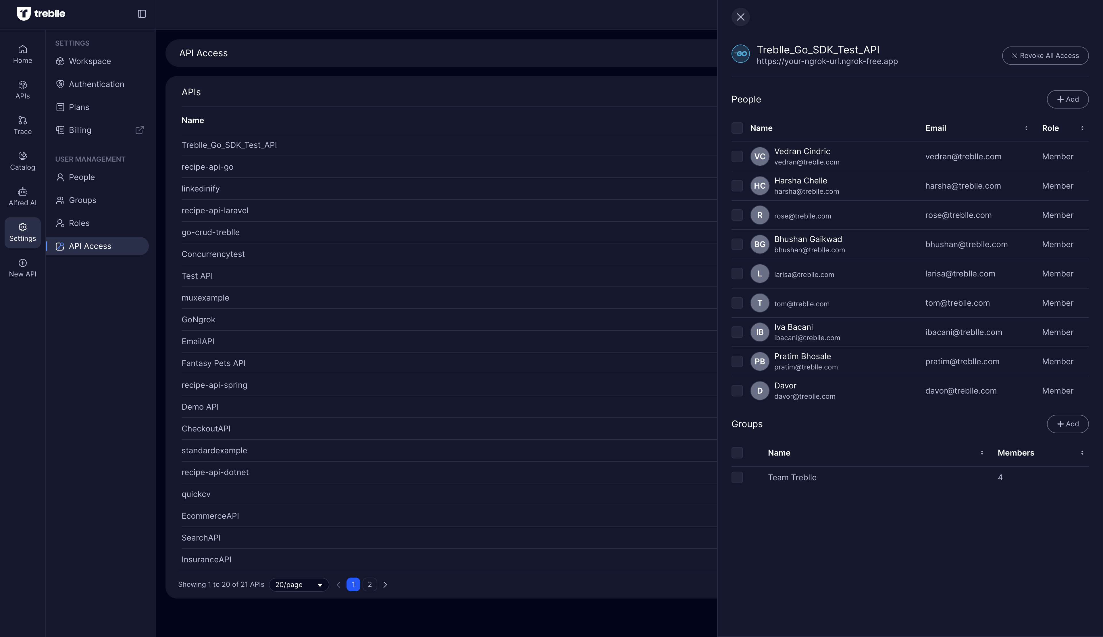 Grant API access to people or groups. Workspace membership does not imply API access.